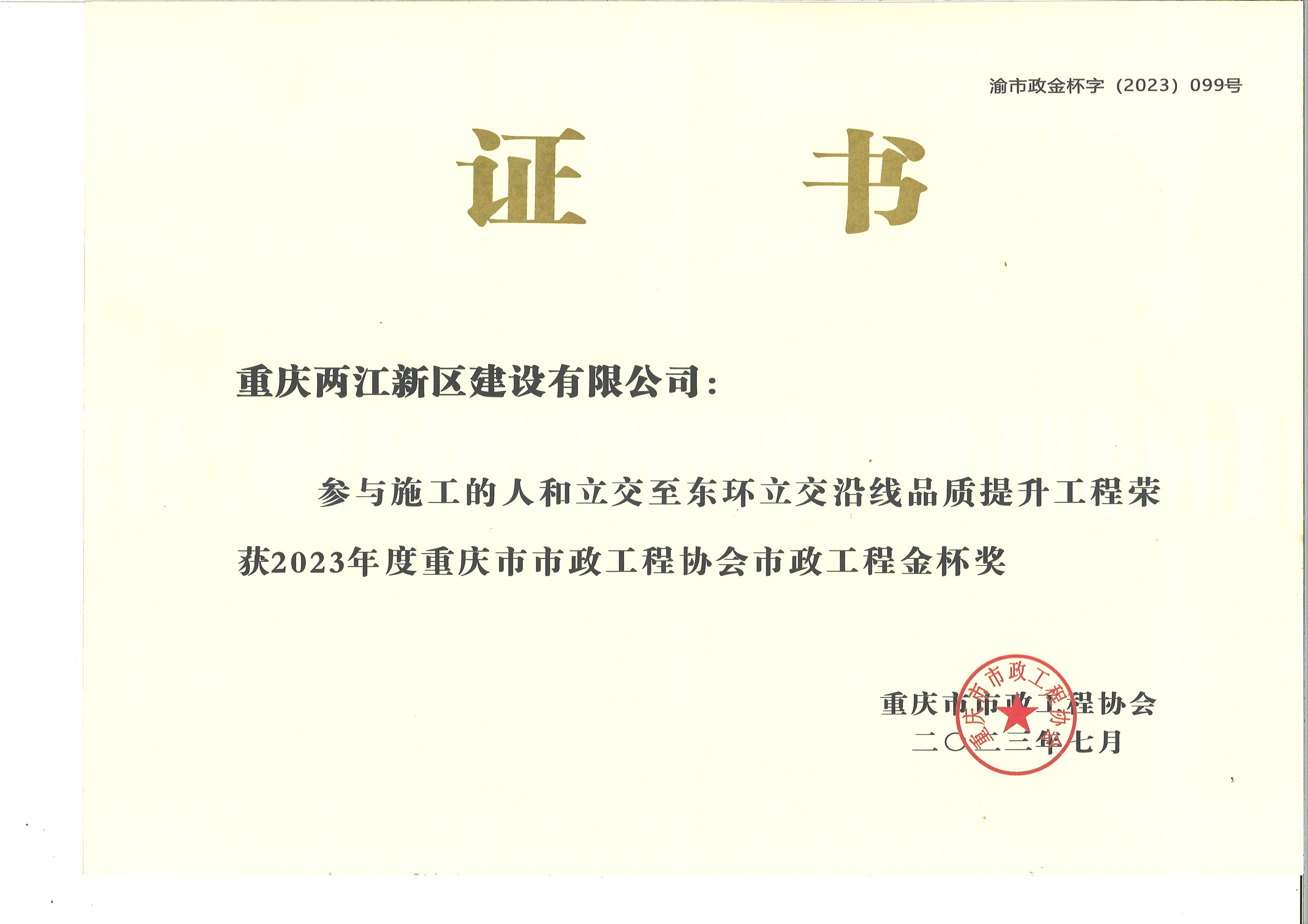 人和立交至東環(huán)立交沿線品質(zhì)提升工程獲得重慶市市政工程協(xié)會(huì)市政工程金杯獎(jiǎng)