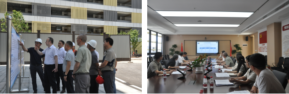 調研團隊首先深入項目現(xiàn)場,實地查看項目施工進度、安全文明管理及智能建造技術應用等情況。兩江建設公司相關負責人就項目概況、建筑布局、建筑結構特點等內容作詳細介紹。