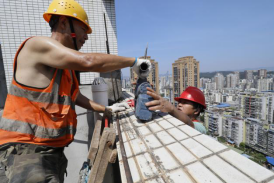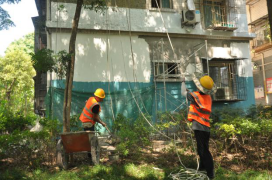 “蜘蛛人”VS“煉丹爐”:兩江建設(shè)人給安置房外墻換“新衣”